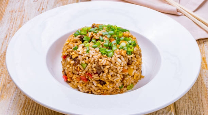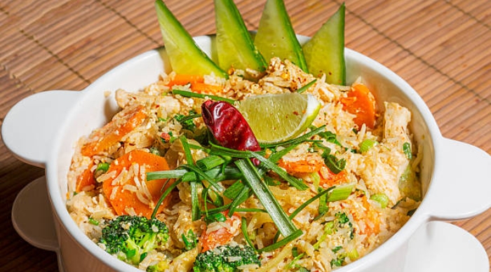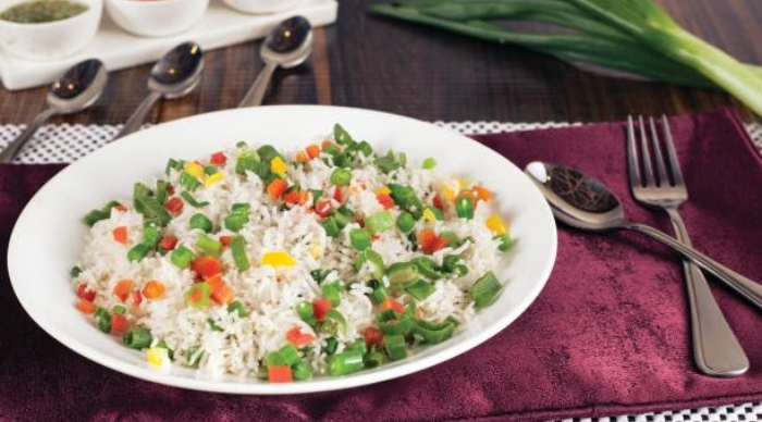 Delicious fried rice tossed with a medley of fresh, crunchy vegetables and savory spices.