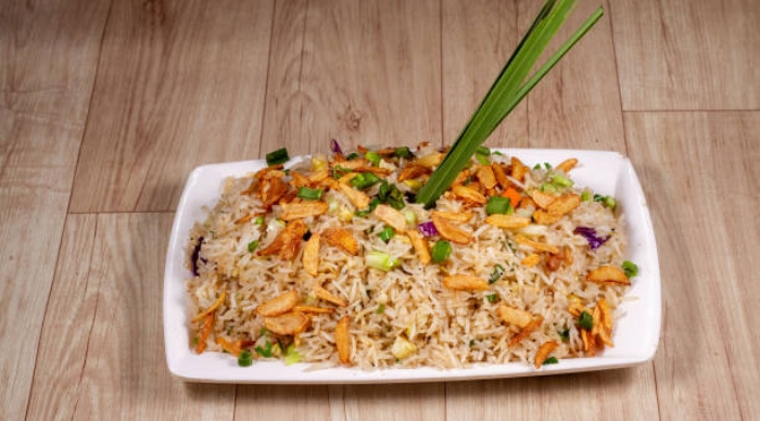 Aromatic fried rice tossed with crispy burnt garlic for a rich, smoky flavor.